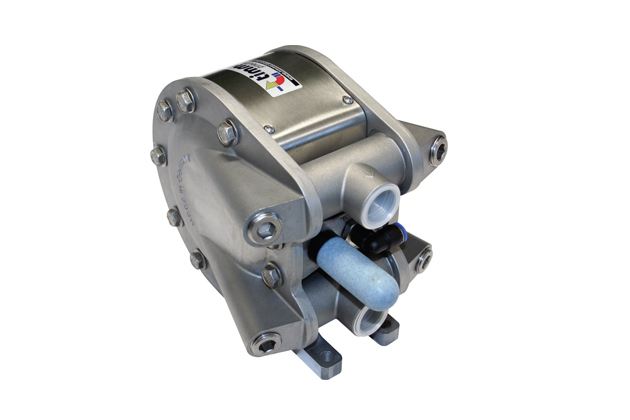 电动喷雾器隔膜泵工作原理: 气动双隔膜泵采用压缩空气、氮气或天然气作为动力。主定向(气动)控制阀将压缩空气分配至气体腔室,向隔膜的内表面上施加均匀压力。同时排出的气体从泵另一侧后方通过气阀组件导向端口排出。 气动双隔膜泵内腔气体压力超过液体腔压力,隔膜连杆来回移动,在一侧进行排放,在另一侧进行吸入。排放和吸入液体的方向由止回阀(球阀或片状阀)的方向控制。吸入行程使泵执行吸入。吸入行程可降低舱室压力,增加腔室体积。从而生成大气压力压差,推动液体经过吸入管道,穿过吸入侧止回阀,流入外部液体腔。吸入侧行程还可启动泵的往复(移位、行程或循环)运动。气动双隔膜泵通过行程机械拉动吸入隔膜的移动气动双隔膜泵的内板与对准的驱动柱塞发生接触,移动导向阀芯。导向阀激活后,便向主定向气阀的另一端发出压力信号,气动双隔膜泵使压缩空气方向改向内部腔室的另一侧如此反复运动完成介质的连续输送。